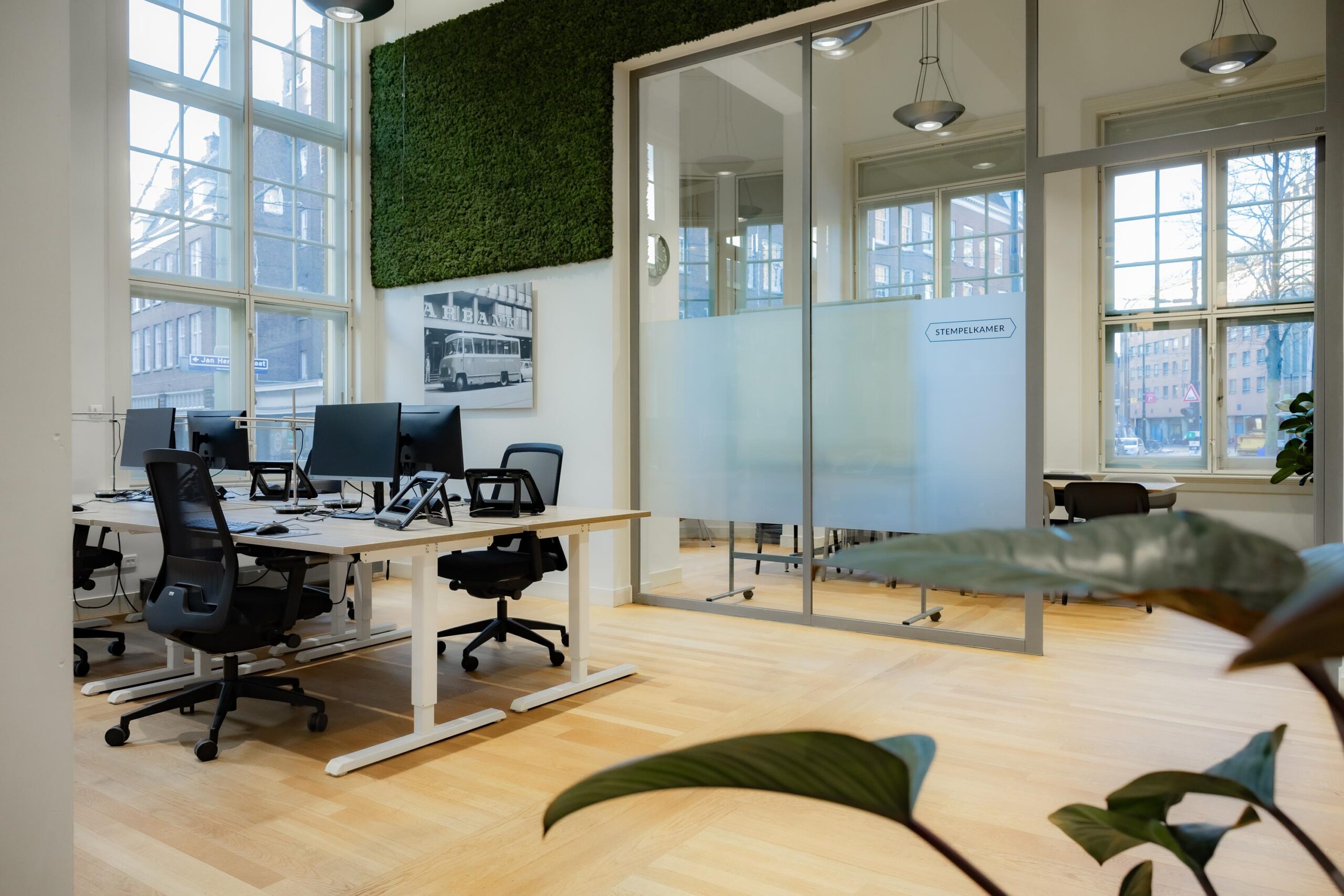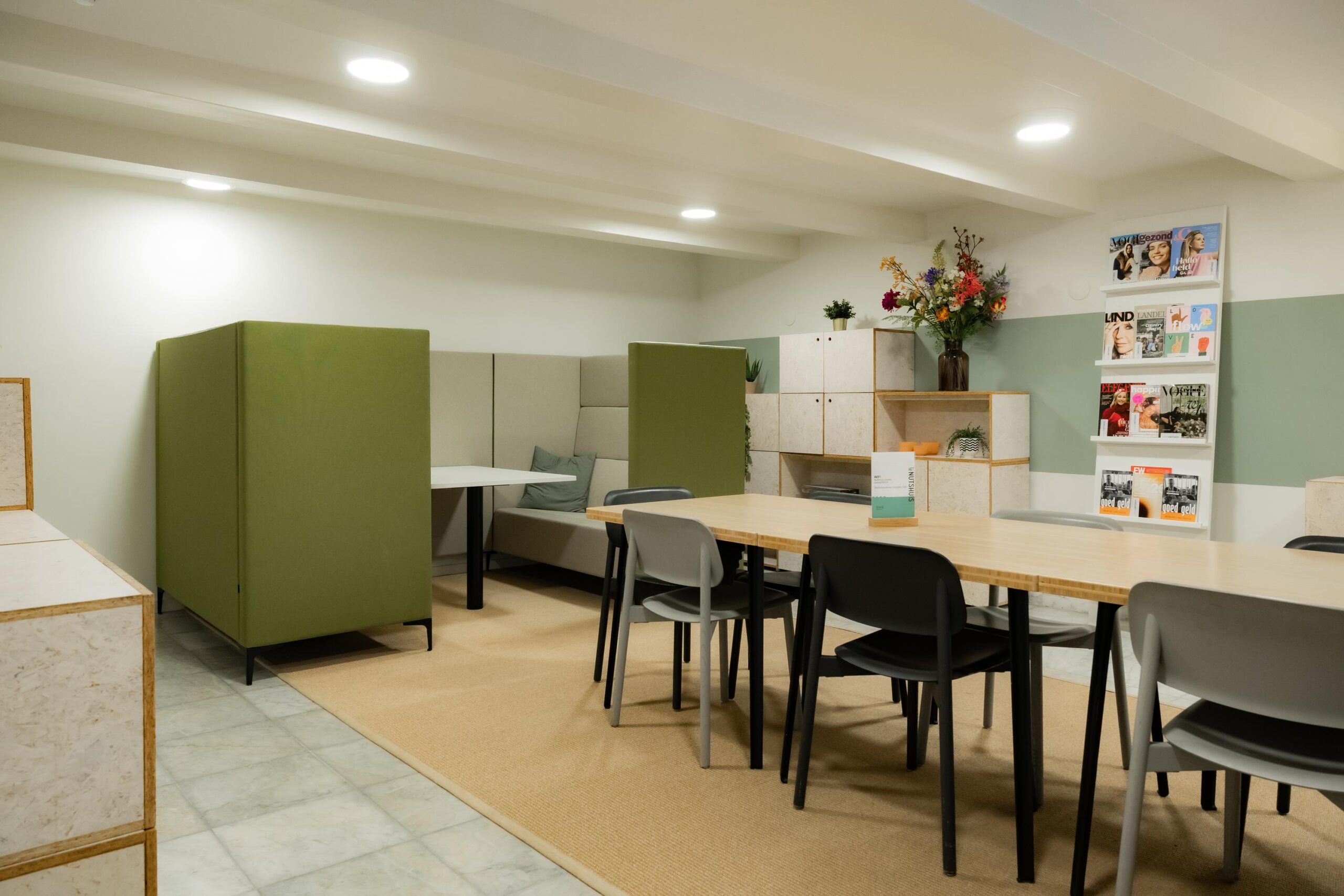 Voor € 25,- per dag huurt u een flexwerkplek, inclusief onbeperkt koffie en thee, in een stille en sfeervolle ruimte met veel natuurlijke lichtinval. De bureaus zijn in hoogte verstelbaar, de stoelen ergonomisch en de WiFi snel. Ook kunt u gebruikmaken van belcellen en printfaciliteiten.