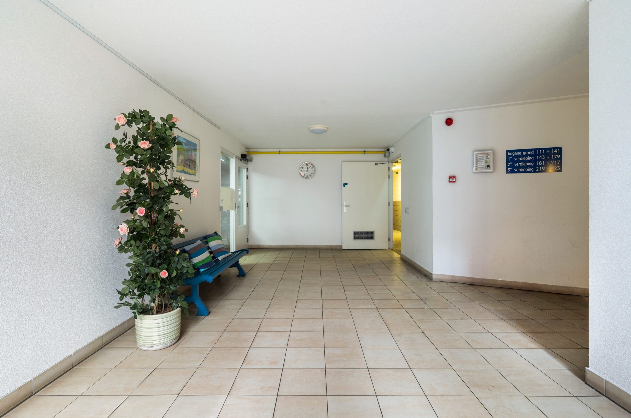 De afgesloten gemeenschappelijke entree is voorzien van een bellentableau, postbussen en videofooninstallatie. In de hal bevindt zich het trappenhuis, lift en afgesloten toegang tot de parkeergarage. Via het souterrain is een inpandige doorgang aanwezig naar het verzorgingstehuis ‘Veenhage’ met diverse voorzieningen zoals een huisartspraktijk en een apotheek. U kunt desgewenst gebruikmaken van de voorzieningen van dit verzorgingstehuis.