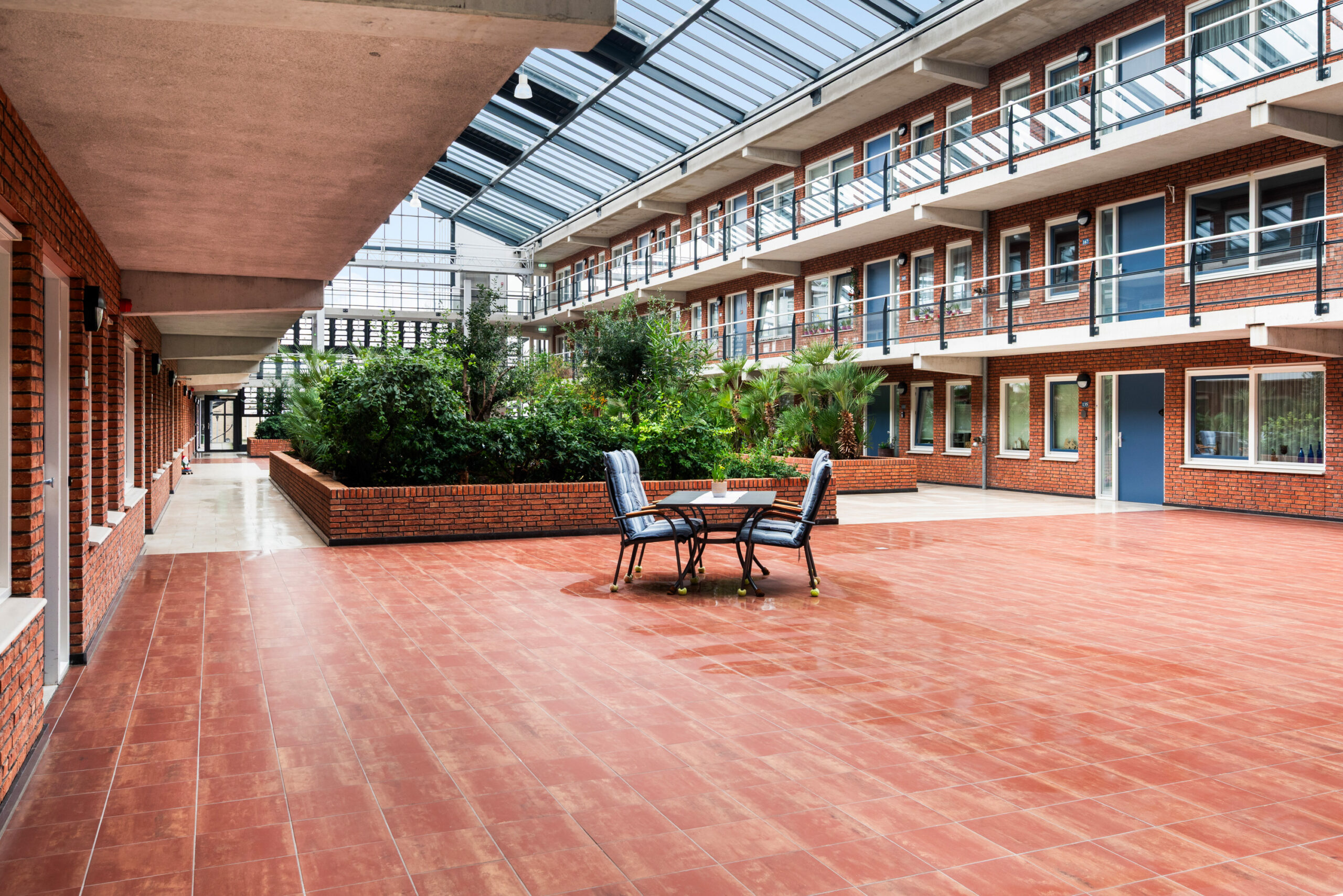– Het betreft een kleinschalig appartementencomplex (Villa Villagio) met overdekte binnentuin;