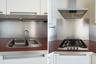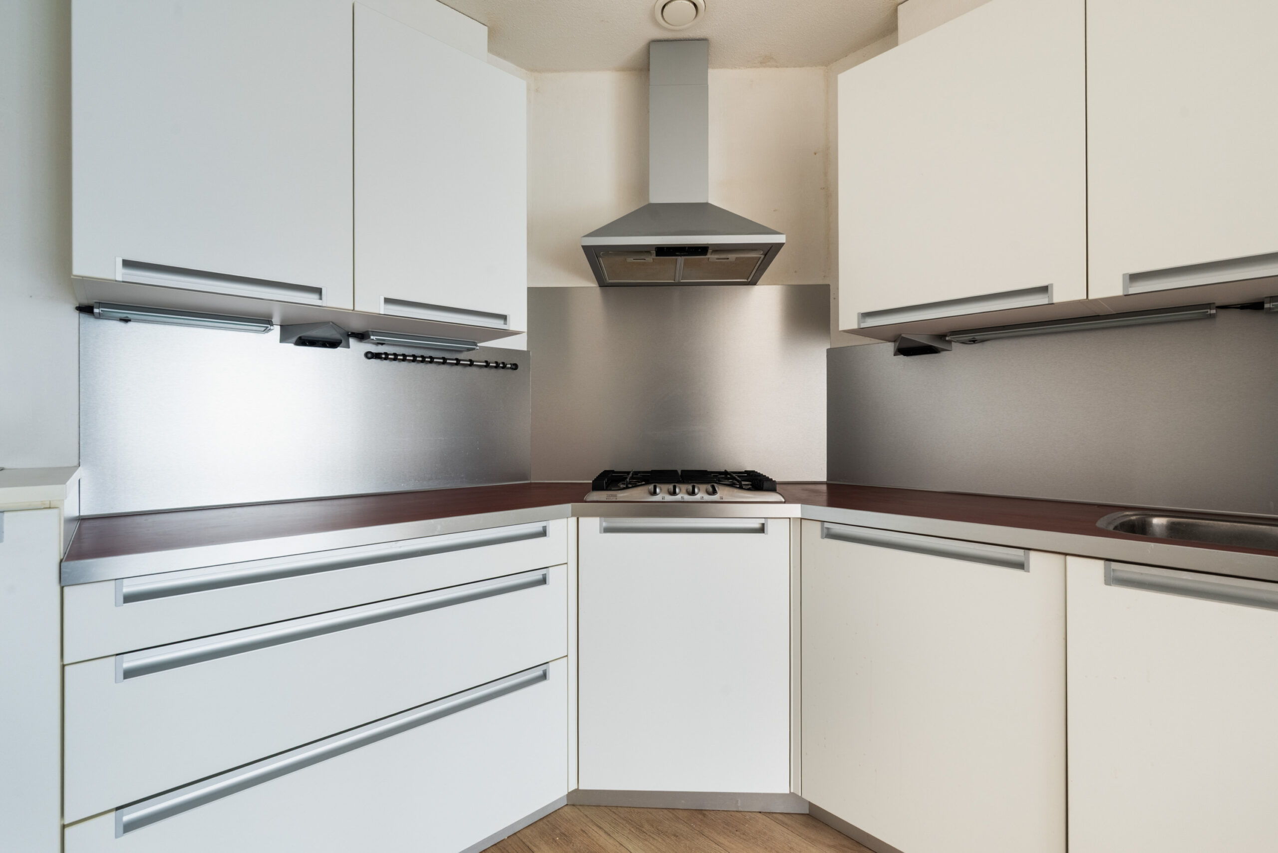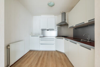 Vanuit de woonkamer komt u in de L-vormige half open keuken voorzien van diverse inbouwapparatuur te weten: gasfornuis, recirculatie afzuigkap, vaatwasser en koelkast.
